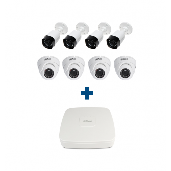 Комплект HD 4 уличные + 4 купольные камеры Dahua HAC-HFW1000RP-S3-0360B / HAC-HDW1100RP-0360B-S3
